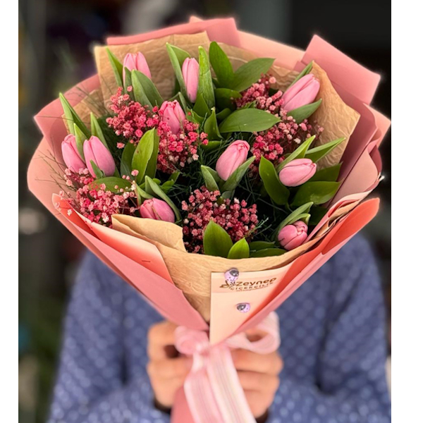 10 Adet Pembe Laleden Buket-Fla89