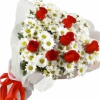 7 adet kırmızı gül. 10 dal krizantem ile hazırlanan buket.
